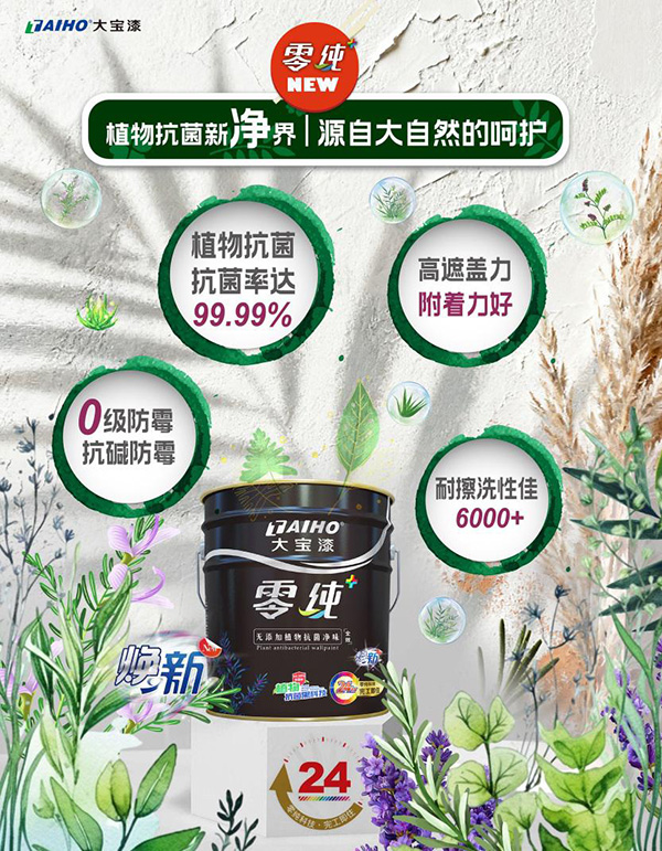 大宝漆「零纯+植物抗菌」系列焕新升级,融合【无添加】净味配方,完成从“抗菌防霉”到“纯净呼吸”的安全跃升—无论新房初装,还是旧居翻新,皆可安心交付。