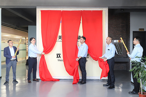 活动伊始,在全体与会人员的共同期待下,张正贤总经理、周志鸿副总经理与叶小兵营销总监共同为全新展厅揭幕。