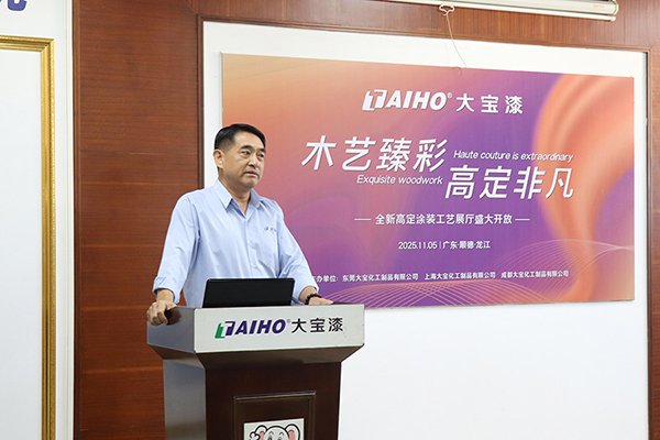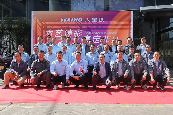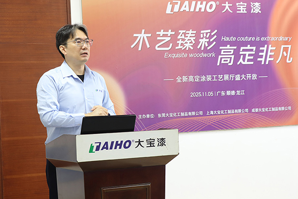 11月5日,大宝漆顺德·龙江全新高定涂装工艺展厅盛大启幕。活动以“木艺臻彩 高定非凡”为主题,大宝化工直销事业部总经理张正贤、业务一部副总经理周志鸿、业务一部营销总监叶小兵以及顺德办全体业务与工程服务人员等,共同见证了这一服务升级的新里程碑。